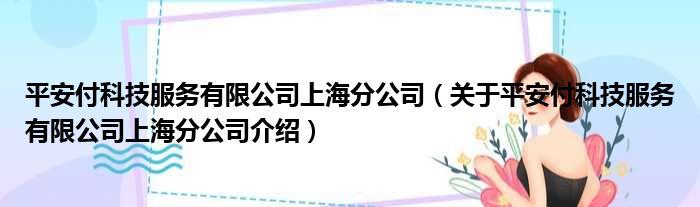 平安付科技服務有限公司上海分公司(關于平安付科技服務有限公司上海分公司介紹)