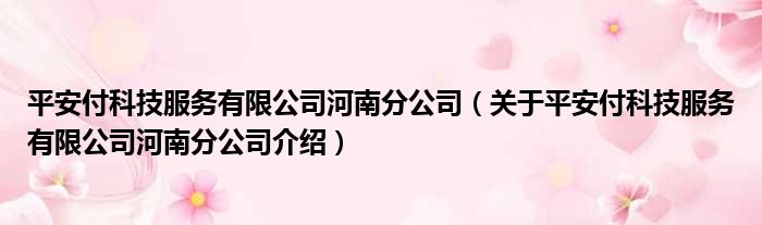 平安付科技服務有限公司河南分公司(關于平安付科技服務有限公司河南分公司介紹)