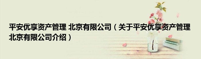 平安優享資產管理 北京有限公司(關于平安優享資產管理 北京有限公司介紹)