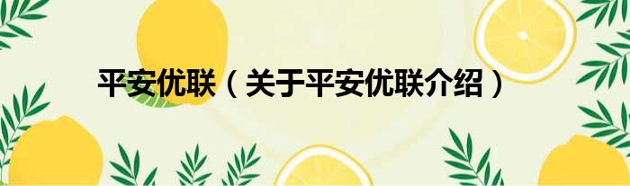 大家好,笑笑來為大家解答以上的問題。平安優聯,關于平安優聯介紹這個很多人還不知道,現在讓我們一起來看看吧!