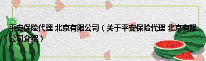 平安保險代理 北京有限公司(關于平安保險代理 北京有限公司介紹)