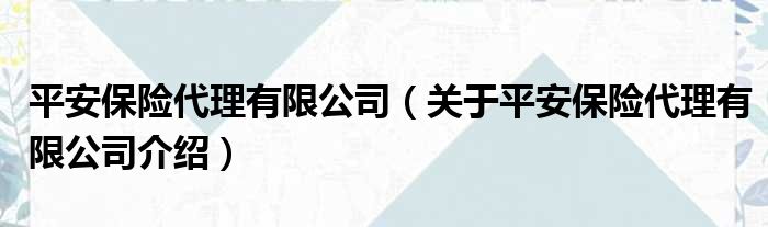 平安保險代理有限公司(關于平安保險代理有限公司介紹)