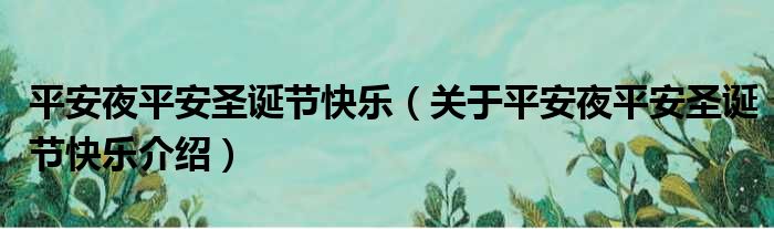 平安夜平安圣誕節快樂(關于平安夜平安圣誕節快樂介紹)