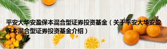 平安大華安盈保本混合型證券投資基金(關于平安大華安盈保本混合型證券投資基金介紹)