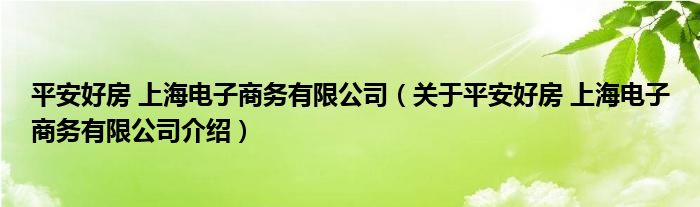 平安好房 上海電子商務有限公司(關于平安好房 上海電子商務有限公司介紹)