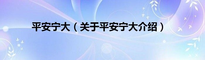 大家好,笑笑來為大家解答以上的問題。平安寧大,關于平安寧大介紹這個很多人還不知道,現在讓我們一起來看看吧!