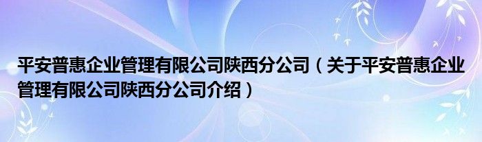 關于平安普惠企業管理有限公司陜西分公司到此分享完畢,希望能幫助到您。