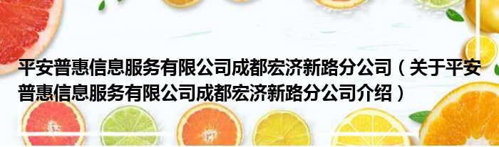 平安普惠信息服務有限公司成都宏濟新路分公司(關于平安普惠信息服務有限公司成都宏濟新路分公司介紹)