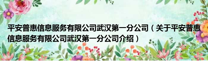 平安普惠信息服務有限公司武漢第一分公司(關于平安普惠信息服務有限公司武漢第一分公司介紹)