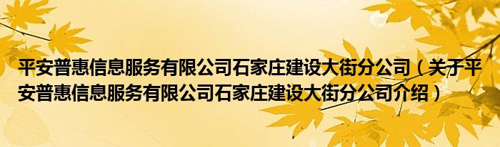 平安普惠信息服務有限公司石家莊建設大街分公司(關于平安普惠信息服務有限公司石家莊建設大街分公司介紹)