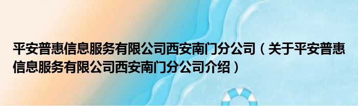 平安普惠信息服務有限公司西安南門分公司(關于平安普惠信息服務有限公司西安南門分公司介紹)