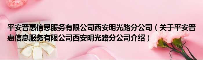 平安普惠信息服務有限公司西安明光路分公司(關于平安普惠信息服務有限公司西安明光路分公司介紹)