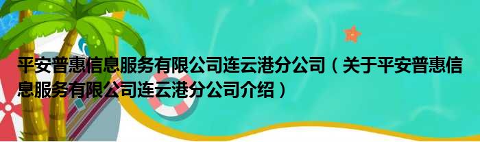 平安普惠信息服務有限公司連云港分公司(關于平安普惠信息服務有限公司連云港分公司介紹)