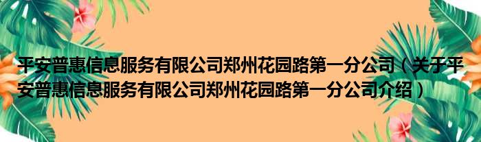 平安普惠信息服務有限公司鄭州花園路第一分公司(關于平安普惠信息服務有限公司鄭州花園路第一分公司介紹)