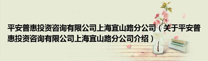平安普惠投資咨詢有限公司上海宜山路分公司(關于平安普惠投資咨詢有限公司上海宜山路分公司介紹)