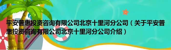 平安普惠投資咨詢有限公司北京十里河分公司(關于平安普惠投資咨詢有限公司北京十里河分公司介紹)
