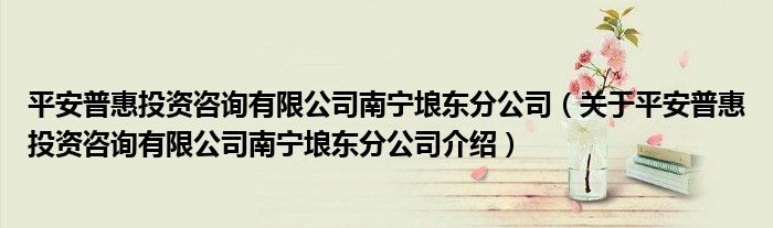 平安普惠投資咨詢有限公司南寧埌東分公司(關于平安普惠投資咨詢有限公司南寧埌東分公司介紹)