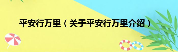 大家好,笑笑來為大家解答以上的問題。平安行萬里,關于平安行萬里介紹這個很多人還不知道,現在讓我們一起來看看吧!