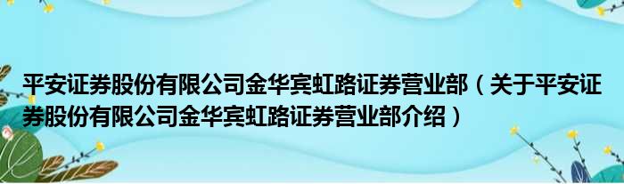 平安證券股份有限公司金華賓虹路證券營業部(關于平安證券股份有限公司金華賓虹路證券營業部介紹)