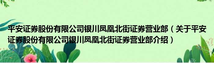 平安證券股份有限公司銀川鳳凰北街證券營業部(關于平安證券股份有限公司銀川鳳凰北街證券營業部介紹)