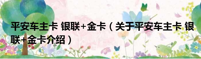 平安車主卡 銀聯+金卡(關于平安車主卡 銀聯+金卡介紹)