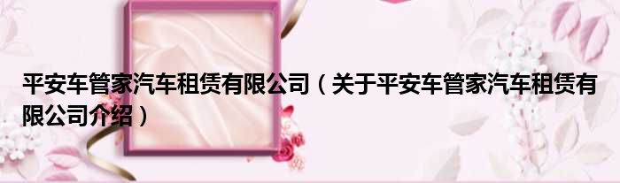 平安車管家汽車租賃有限公司(關于平安車管家汽車租賃有限公司介紹)
