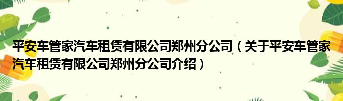 平安車管家汽車租賃有限公司鄭州分公司(關于平安車管家汽車租賃有限公司鄭州分公司介紹)