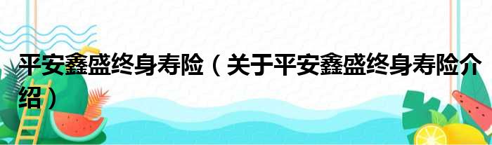 平安鑫盛終身壽險(關于平安鑫盛終身壽險介紹)
