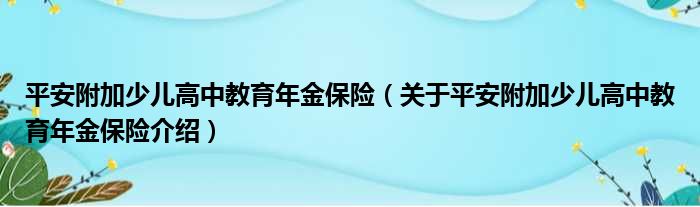 平安附加少兒高中教育年金保險(關于平安附加少兒高中教育年金保險介紹)