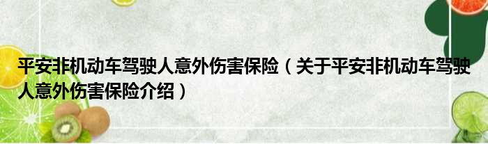平安非機動車駕駛人意外傷害保險(關于平安非機動車駕駛人意外傷害保險介紹)