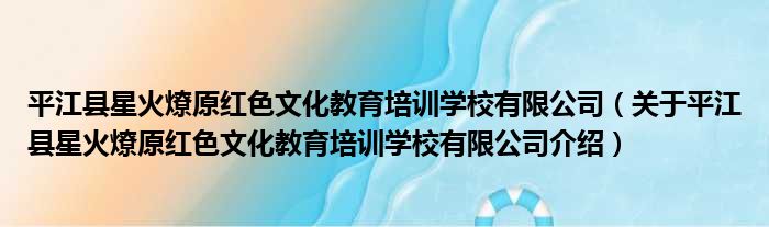 平江縣星火燎原紅色文化教育培訓學校有限公司(關于平江縣星火燎原紅色文化教育培訓學校有限公司介紹)