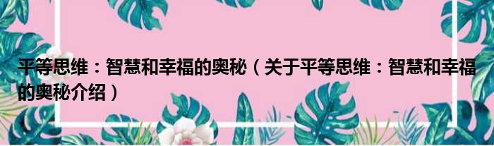 平等思維:智慧和幸福的奧秘(關于平等思維:智慧和幸福的奧秘介紹)