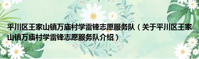 平川區王家山鎮萬廟村學雷鋒志愿服務隊(關于平川區王家山鎮萬廟村學雷鋒志愿服務隊介紹)