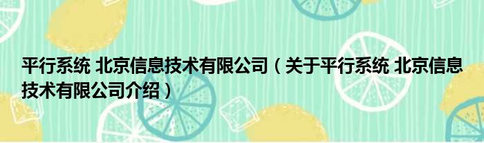 平行系統 北京信息技術有限公司(關于平行系統 北京信息技術有限公司介紹)