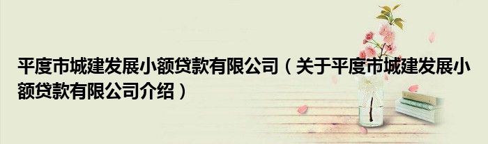 平度市城建發展小額貸款有限公司(關于平度市城建發展小額貸款有限公司介紹)