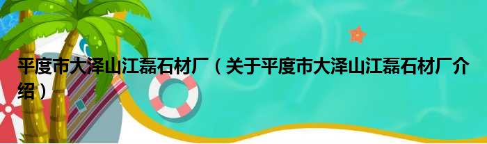 平度市大澤山江磊石材廠(關于平度市大澤山江磊石材廠介紹)
