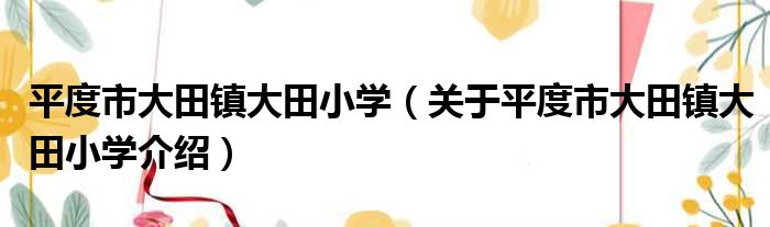平度市大田鎮大田小學(關于平度市大田鎮大田小學介紹)