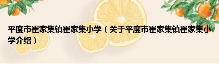 平度市崔家集鎮崔家集小學(關于平度市崔家集鎮崔家集小學介紹)