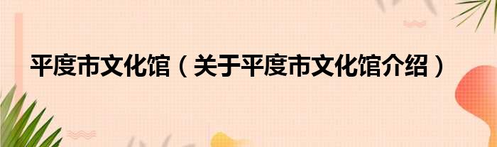 關于平度市文化館到此分享完畢,希望能幫助到您。