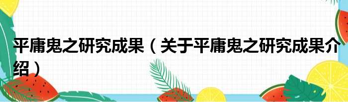 平庸鬼之研究成果(關于平庸鬼之研究成果介紹)