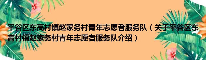 平谷區東高村鎮趙家務村青年志愿者服務隊(關于平谷區東高村鎮趙家務村青年志愿者服務隊介紹)