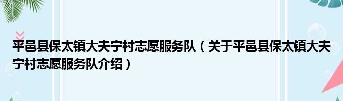 平邑縣保太鎮大夫寧村志愿服務隊(關于平邑縣保太鎮大夫寧村志愿服務隊介紹)