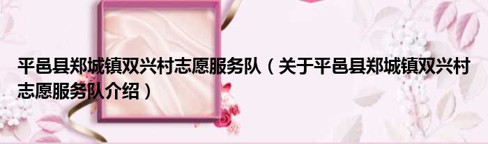 平邑縣鄭城鎮雙興村志愿服務隊(關于平邑縣鄭城鎮雙興村志愿服務隊介紹)