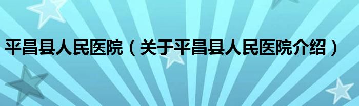 平昌縣人民醫院(關于平昌縣人民醫院介紹)