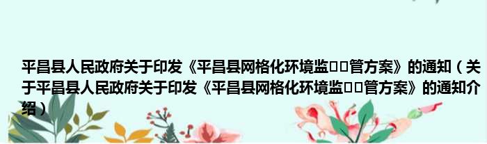 平昌縣人民政府關于印發《平昌縣網格化環境監??管方案》的通知(關于平昌縣人民政府關于印發《平昌縣網格化環境監??管方案》的通知介紹)