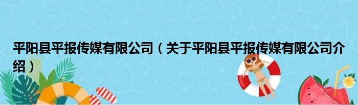 平陽縣平報傳媒有限公司(關于平陽縣平報傳媒有限公司介紹)