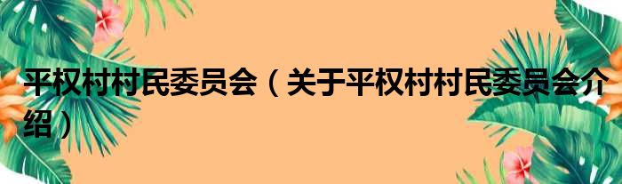 關于平權村村民委員會到此分享完畢,希望能幫助到您。