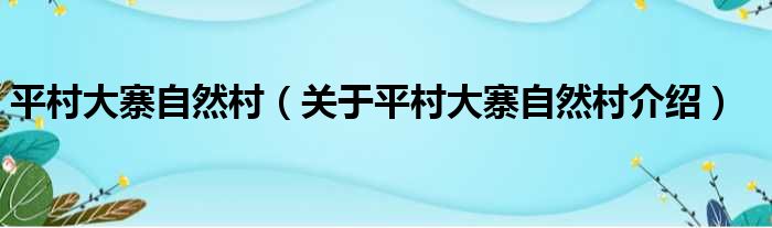 導讀 大家好,笑笑來為大家解答以上的問題。平村大寨自然村,關于平村大寨自然村介紹這個很多人還不知道,現在讓我們一起來看看吧!1、 平村大