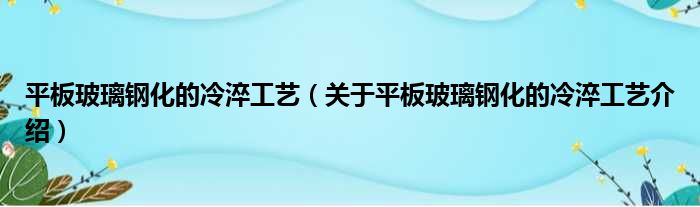 平板玻璃鋼化的冷淬工藝(關于平板玻璃鋼化的冷淬工藝介紹)
