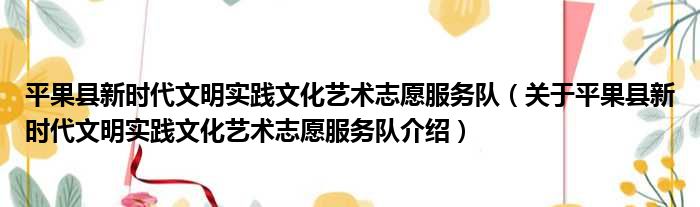 平果縣新時代文明實踐文化藝術志愿服務隊(關于平果縣新時代文明實踐文化藝術志愿服務隊介紹)